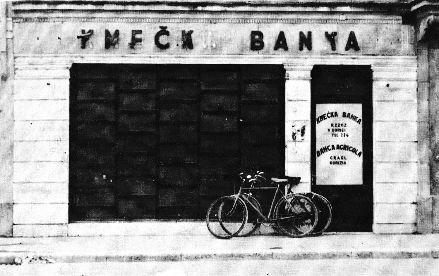 Med dvema svetovnima vojnama je banka poslovala Na Kornu št. 12. Sredi dvajsetih let so ji ime poitalijančili v Banca Agricola; kljub temu, da je bil pritisk oblasti velik, banka ni prekinila s poslovanjem in je edini slovenski bančni zavod v Gorici, ki je preživel obdobje fašističnega raznarodovanja in to predvsem zaradi omejenega poslovanja in tesne povezanosti s članstvom.